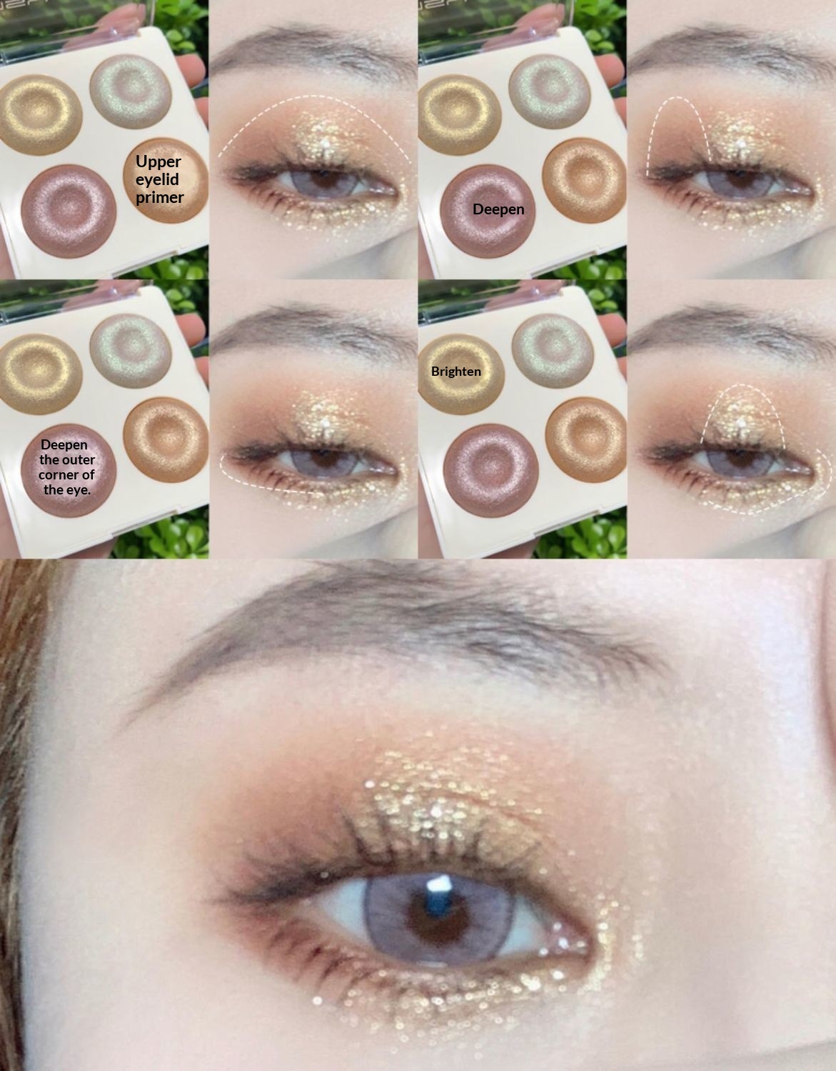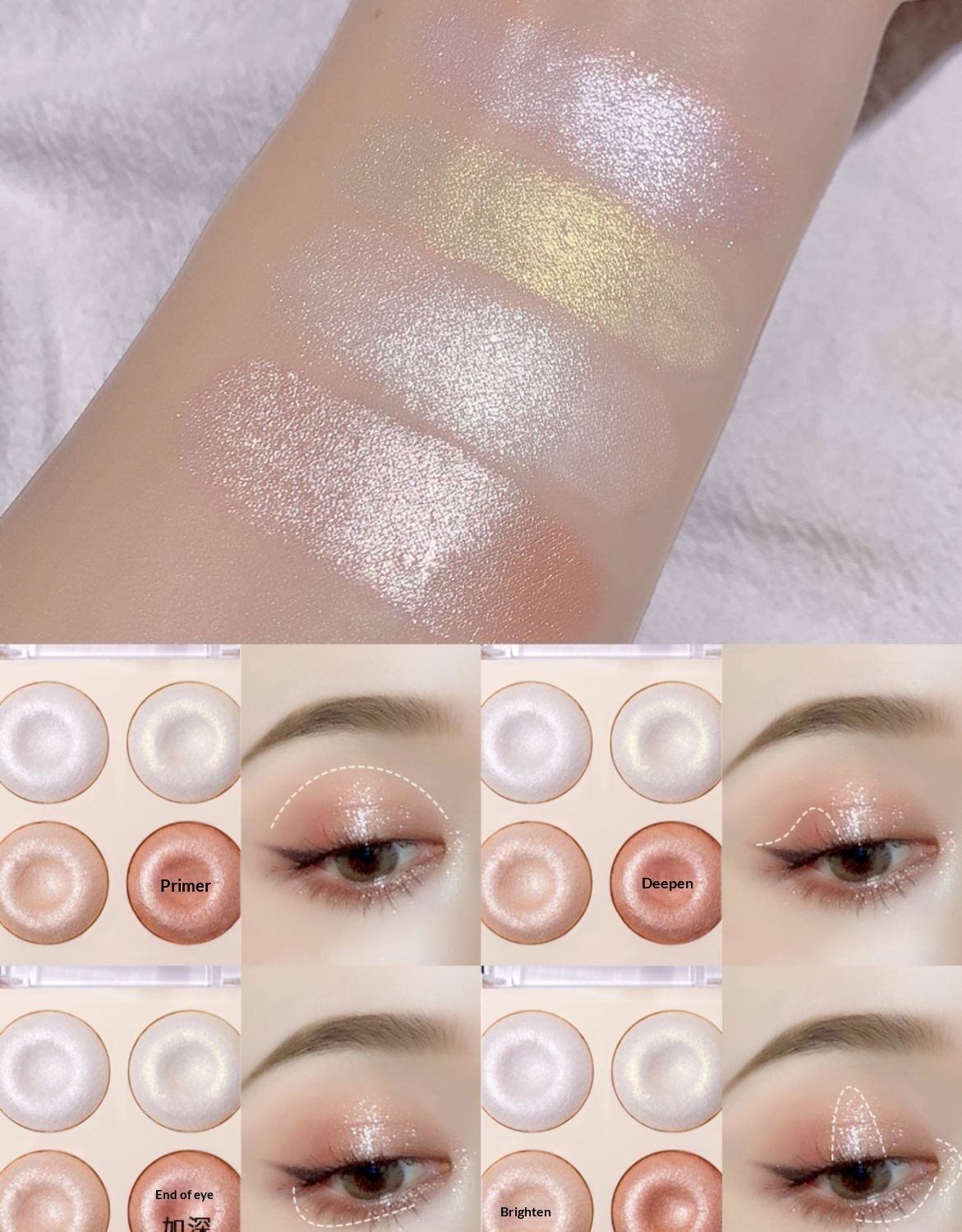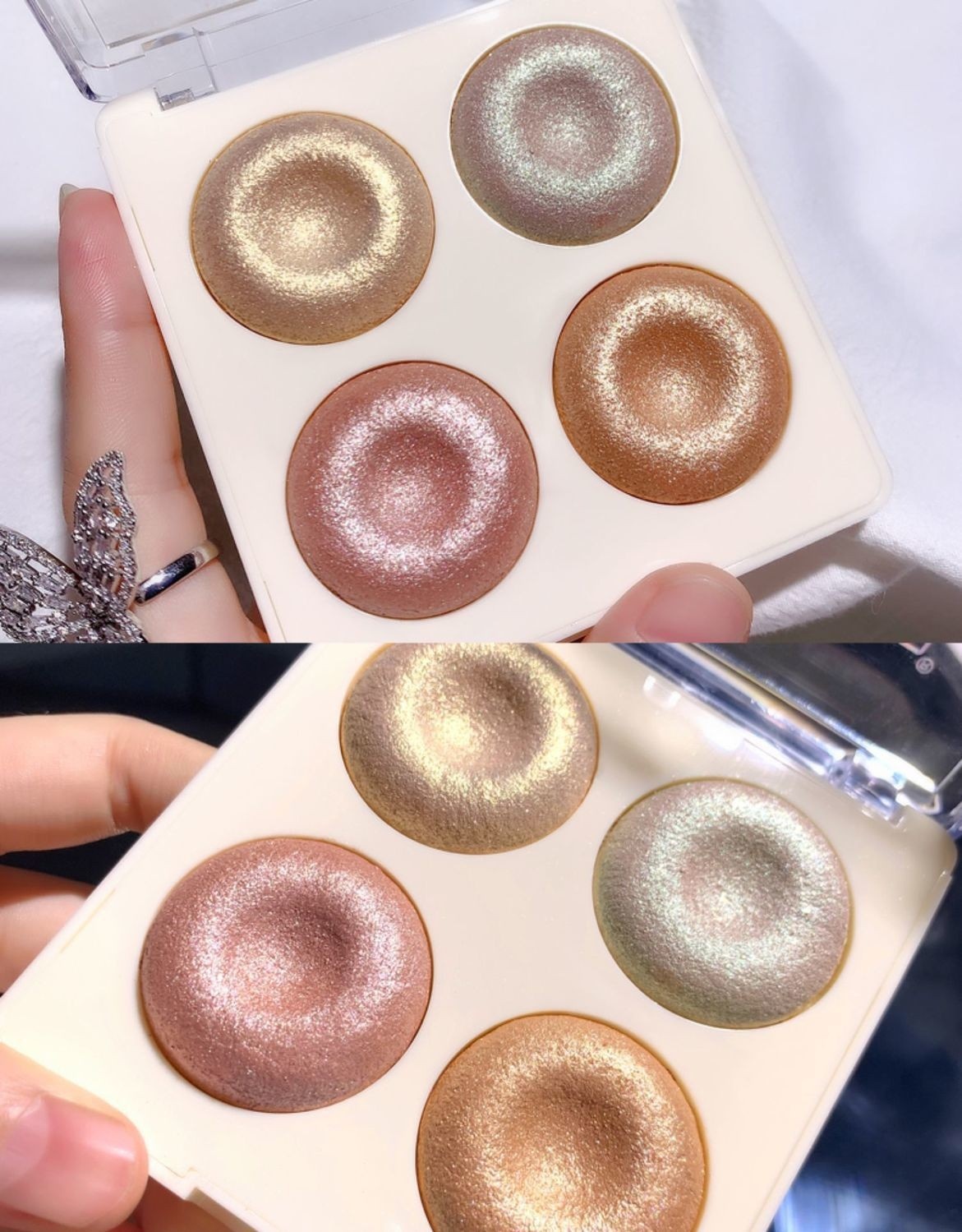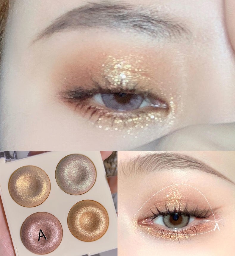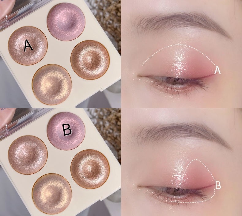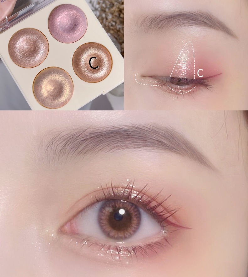 Four-color Baked Highlighter Palette With Shimmering Eyeshadow